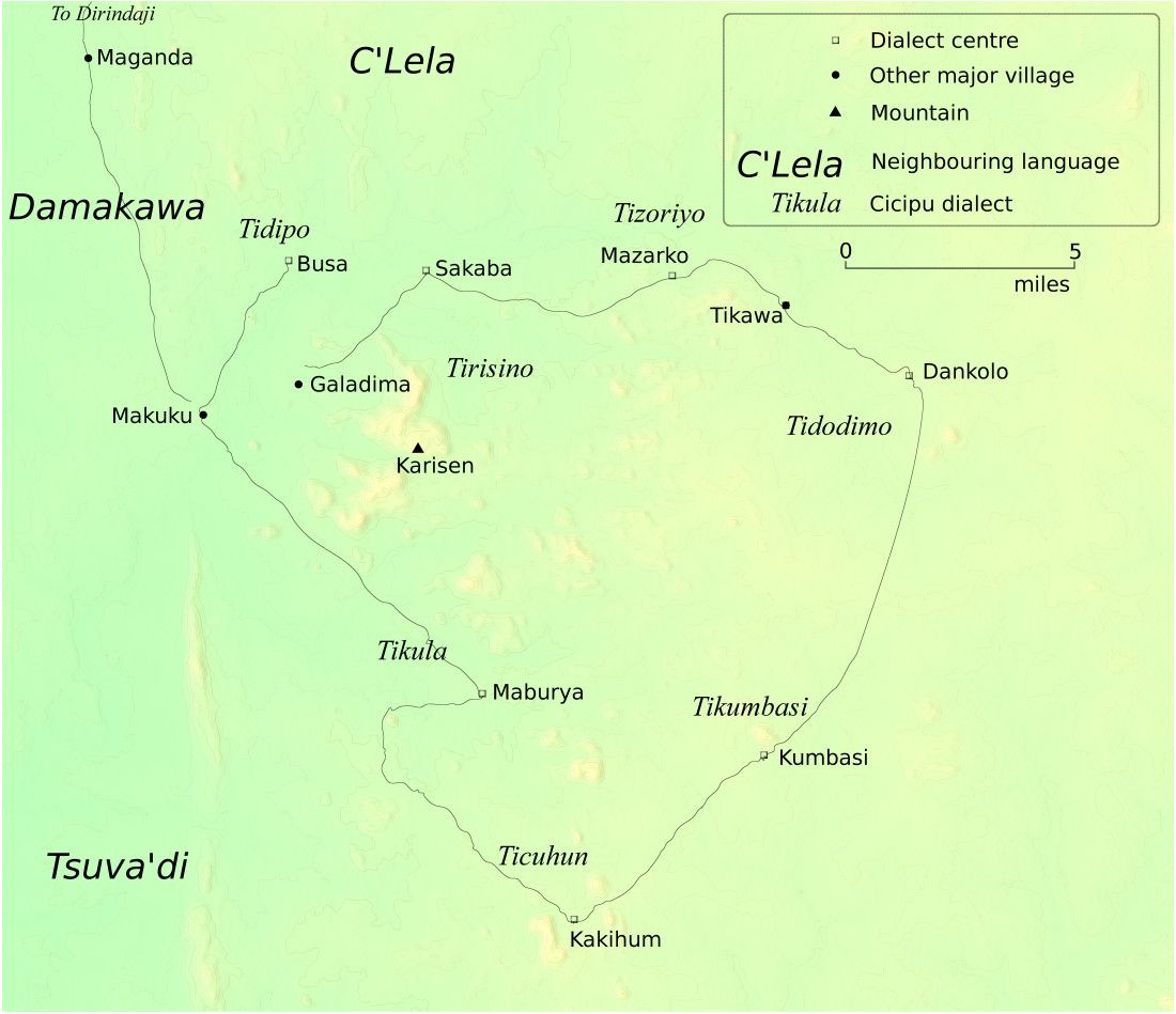 The Cicipu heartland straddles the boundary of Kebbi and Niger States in Nigeria, and speakers can also be found in the southwest of Niger State where farmland is plentiful. Violence in recent years has led to a lot of displacement.